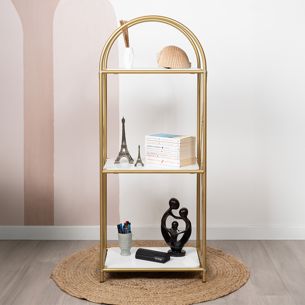 Demeter Dekoratif Raf Mobilya Kitaplık Dekoratif Metal Mobilya Gold 3 Raflı Kitaplık