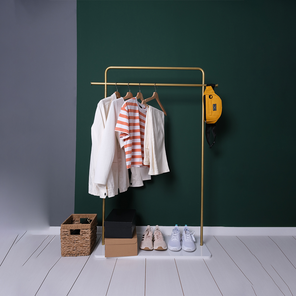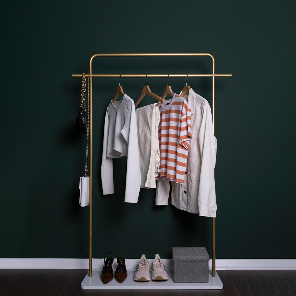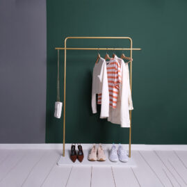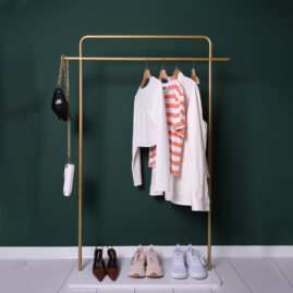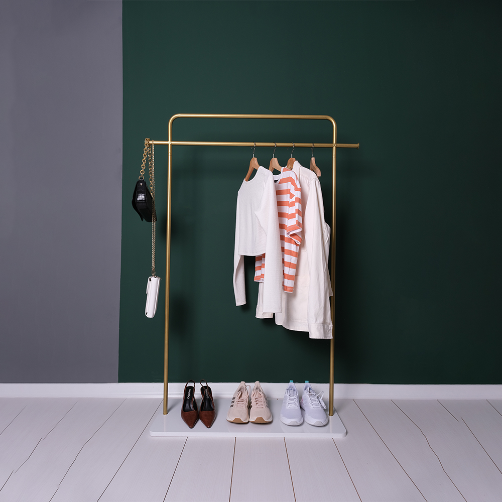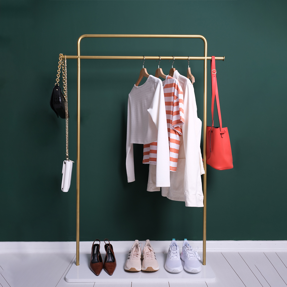 Zeus Metal Ayaklı Askılık Metal Askılık Konfeksiyon Askılığı Gold Elbise ve Kıyafet Askılığı